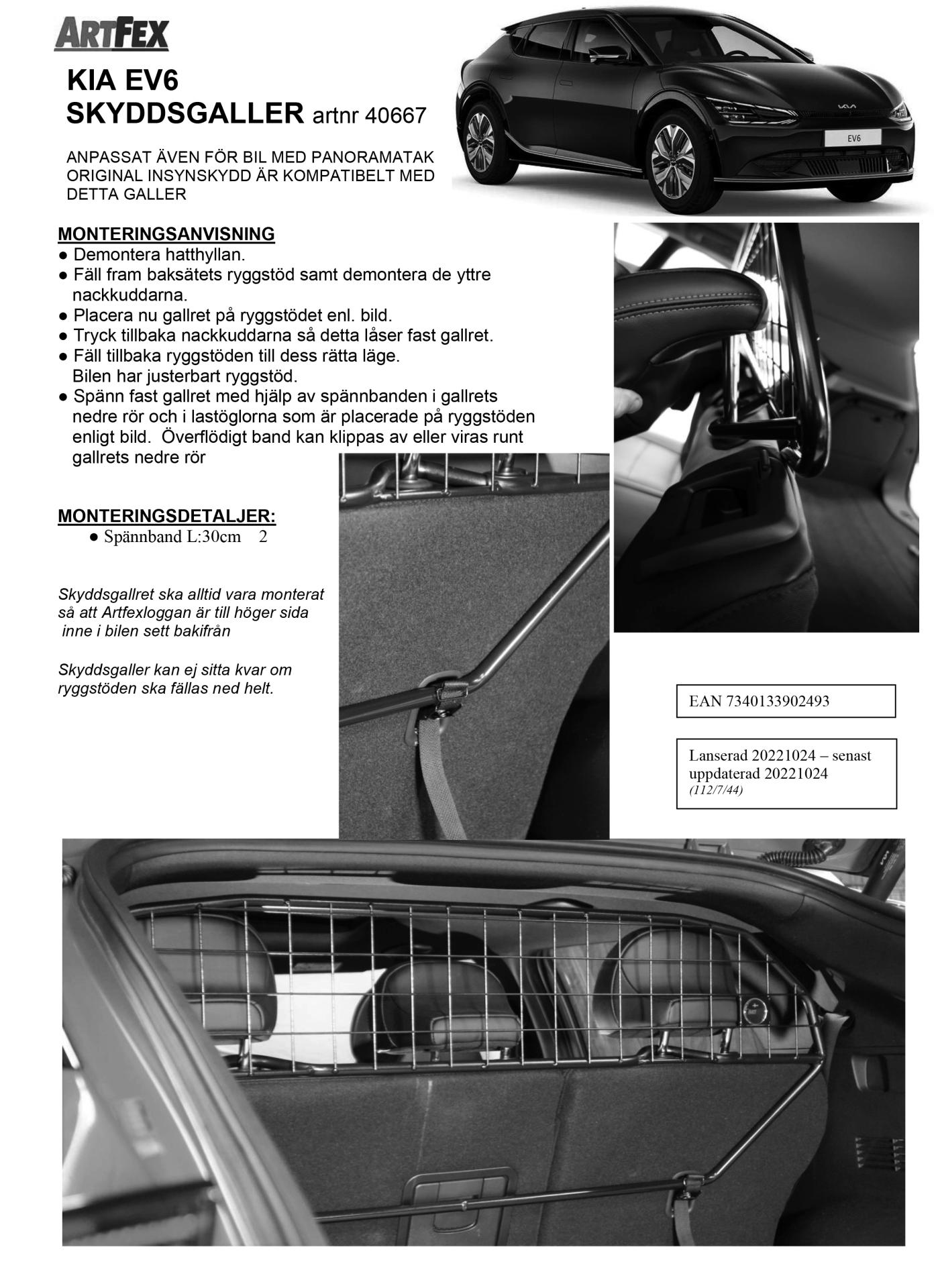 Kjør trygt i bilen med Artfex svenskproduserte laste/beskyttelsesgitter Kia EV6