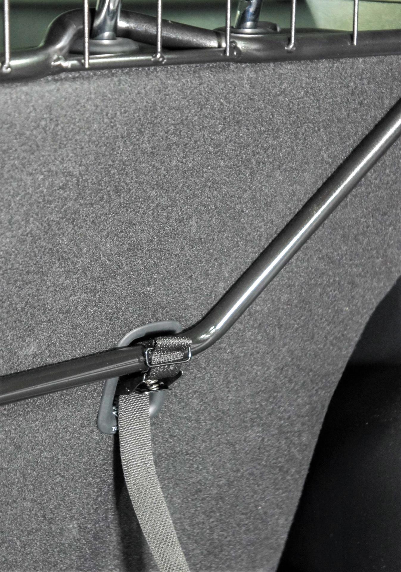 Formålet med gitteret er å beskytte både deg og hunden din. Sikkerhetsgitteret fungerer som en barriere mot lasten i bilen for å tåle de svært store kreftene som oppstår ved en kollisjon.