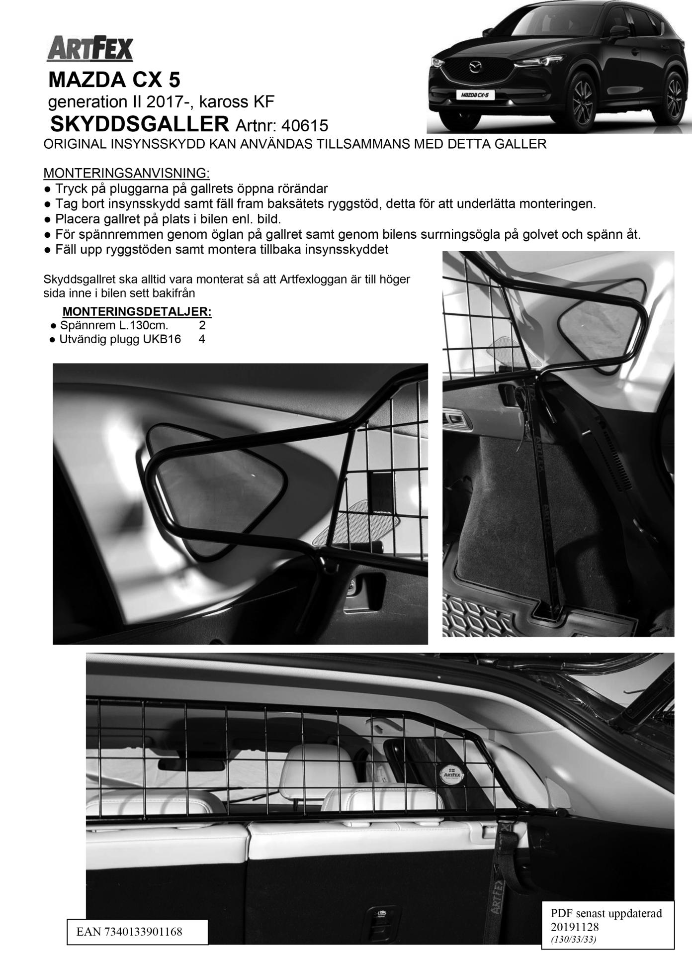 Kjør trygt i bilen med Artfex svenskproduserte laste/beskyttelsesgitter for Mazda CX 5