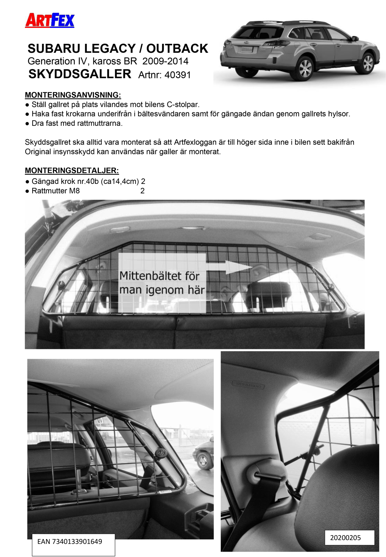 Kjør trygt i bilen med Artfex svenskprodusert lastegitter/beskyttelsesgitter for Subaru Legacy/Outback