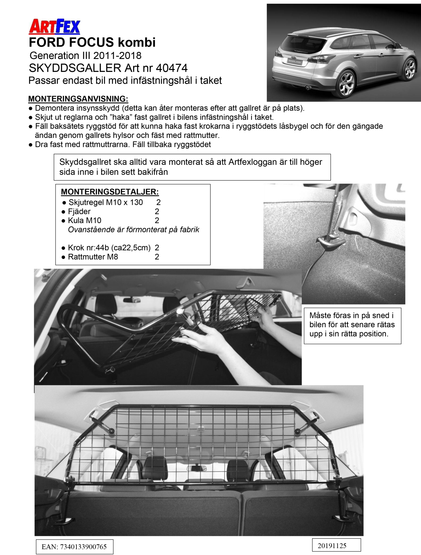 Kjør trygt i bilen med Artfex svenskproduserte laste/beskyttelsesgitter til Ford Focus